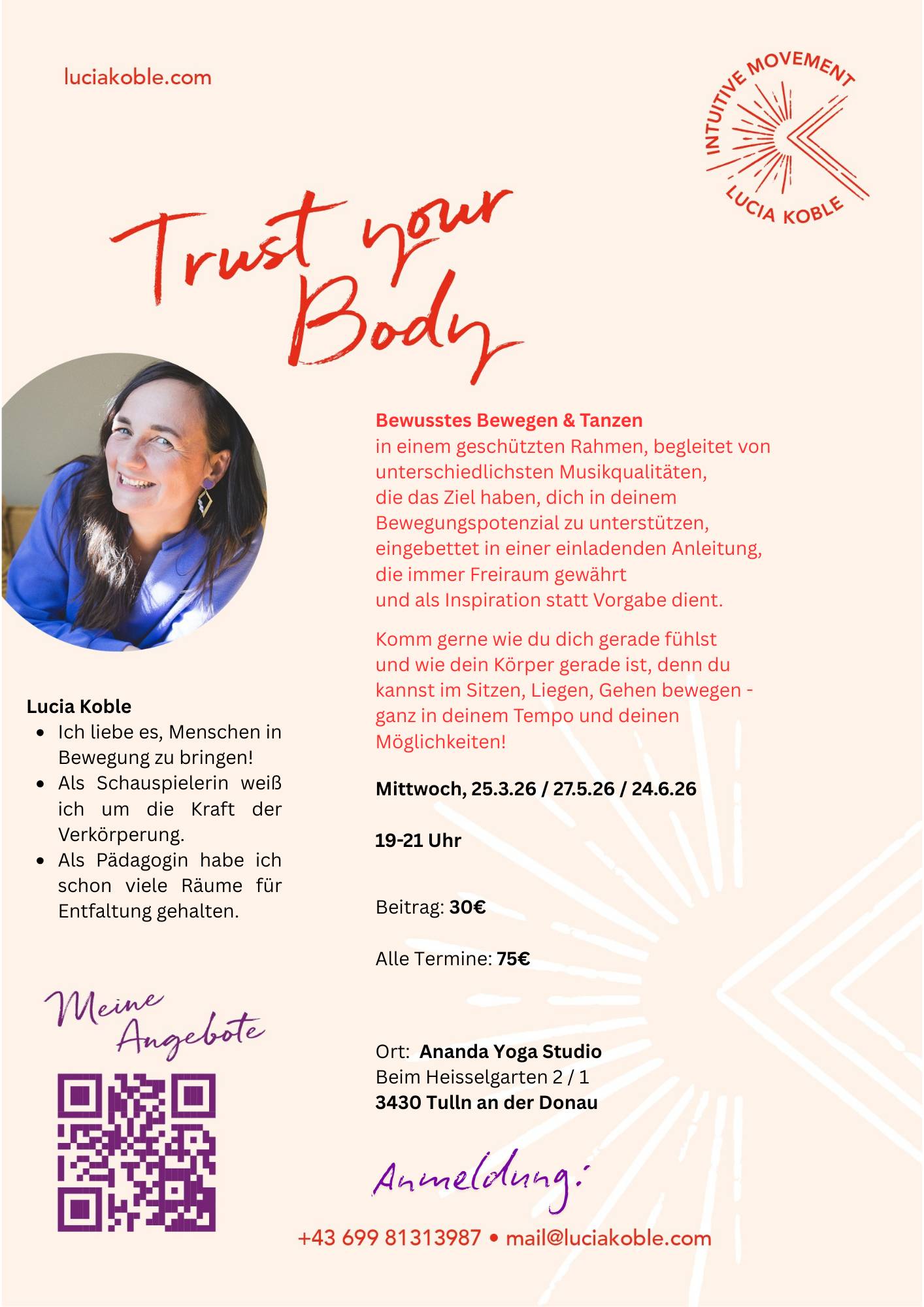 - eine lustvolle Bewegungspraxis zur Vertiefung deiner Körperweisheit